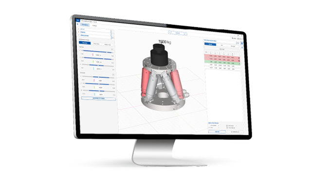 Hexapods can carry loads up to 2 tons at any orientation and if required, be mounted upside down. Because the maximum permissible load of a Hexapod system depends on various parameters, such as the mounting position, the center of gravity of the load and the current position, suitable simulation programs are supplied that enable convenient set-up. They also allow easy determination of workspace and motion limits depending on the selected center of rotation or the current position.