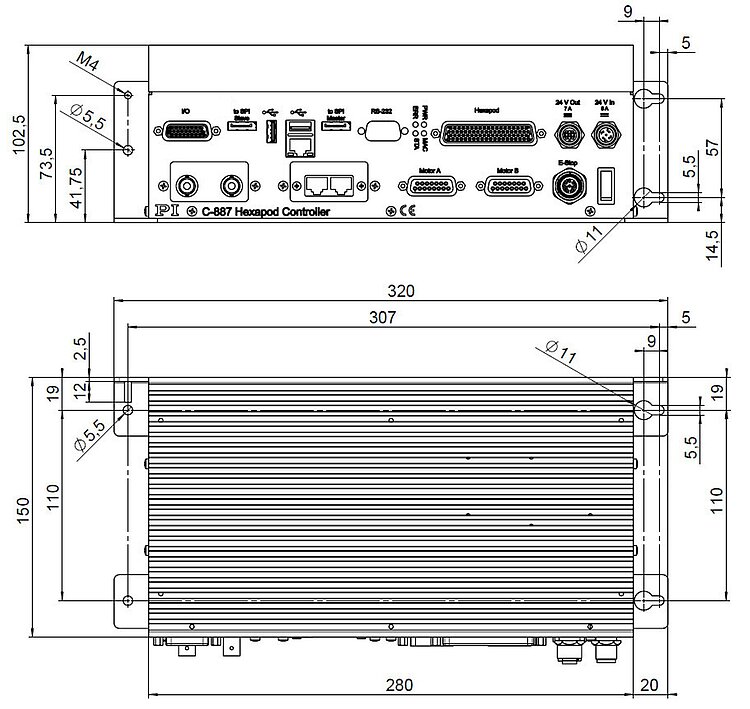 High-performance digital controller for controlling hexapods (6-axis parallel kinematics). Supports various drive types as the controller only provides the control signals, whereas the motor drivers are located in the hexapod or in a separate driver box. In addition, the motor drivers for two further single axes can be controlled.