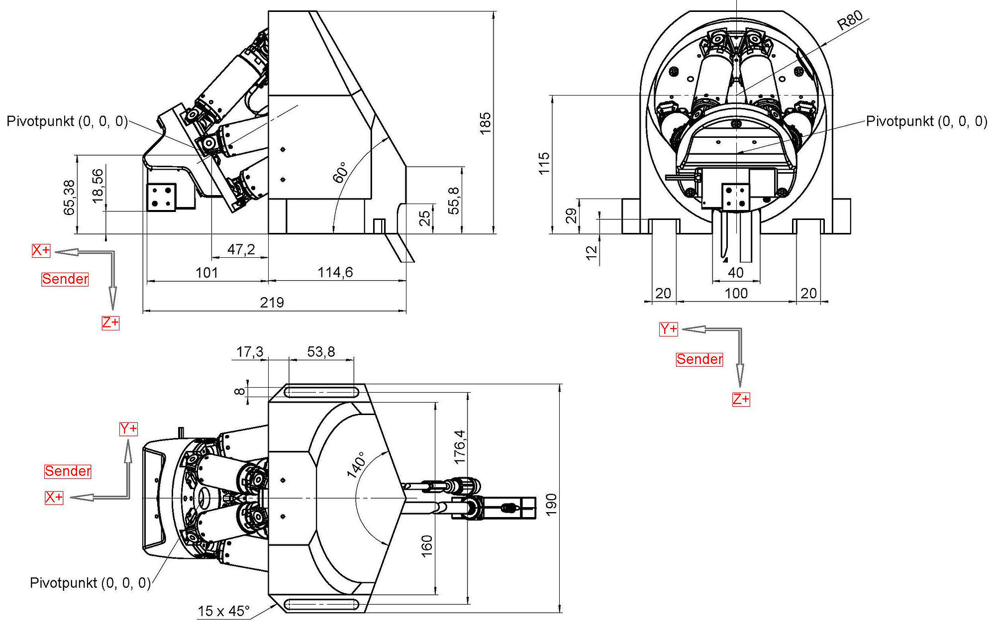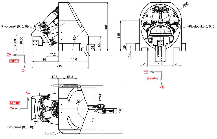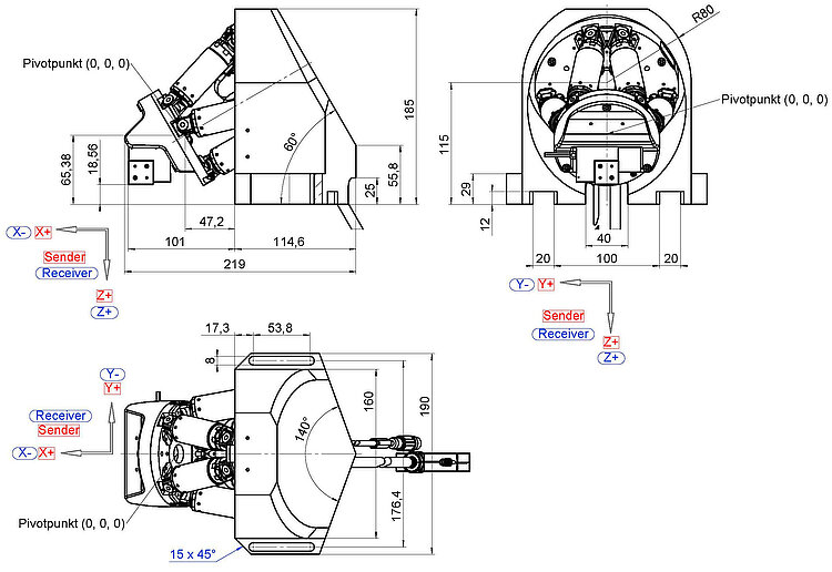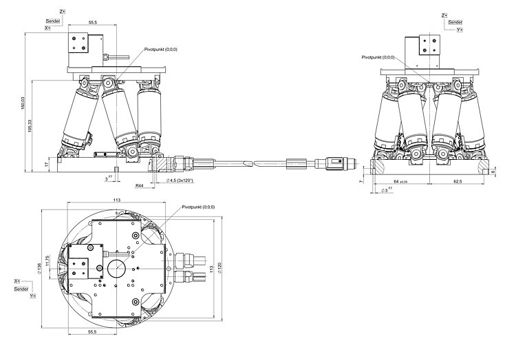 | Rotation range in θX, rough positioning | 29 ° | 29 ° | 20 ° | |